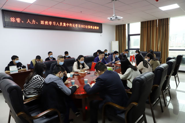 (綜合管理部、人力資源部以及跟班學習人員集中傳達學習兩會精神)