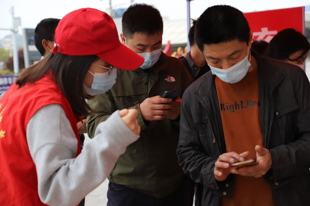(幫助旅客進行掃碼登記)