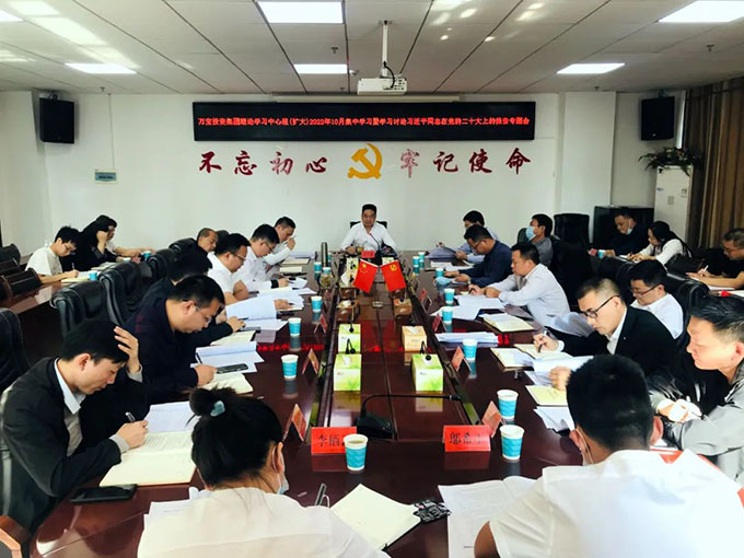 10月16日下午,萬寶投資集團黨委書記、董事長陽文林主持召開理論學習中心組(擴大)2022年10月集中學習暨學習討論習近平同志在黨的二十大上的報告專題會?偨浝硇鞓I波,黨委委員、紀委書記葛旭華及主管以上全體人員參加。